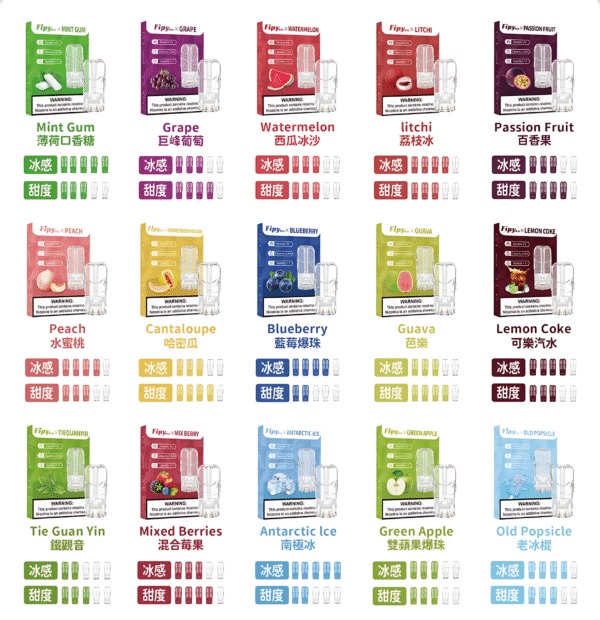 這些煙彈均可與 Fipy 果派一代主機配合使用,插即用、吸感順暢